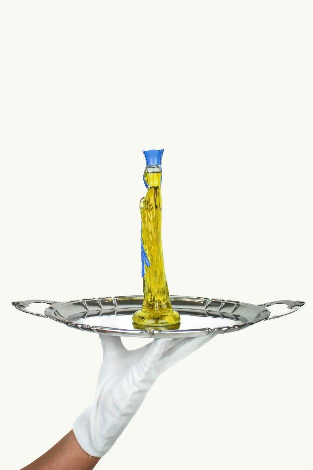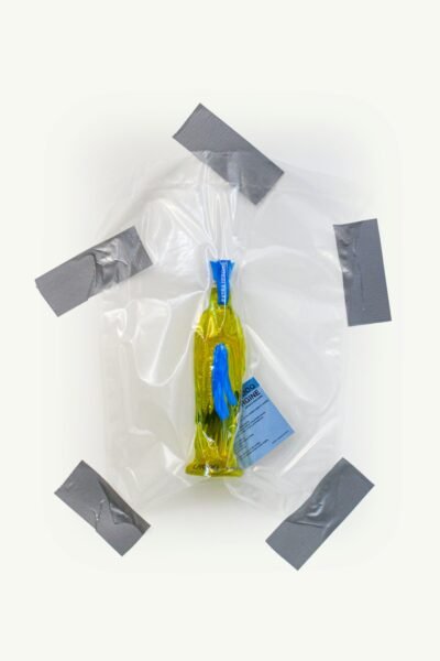 Bottiglia in vetro dipinta a mano.